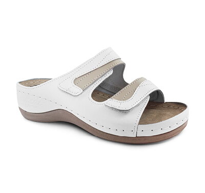 Celokožená zdravotná obuv s anatomicky vytvarovanou gelovou vložkou. Protišmyková podrážka s antishokom. 4 cm podpätok. CE ISO 20347:2012 certifikovaná zdravotná pracovná obuv.